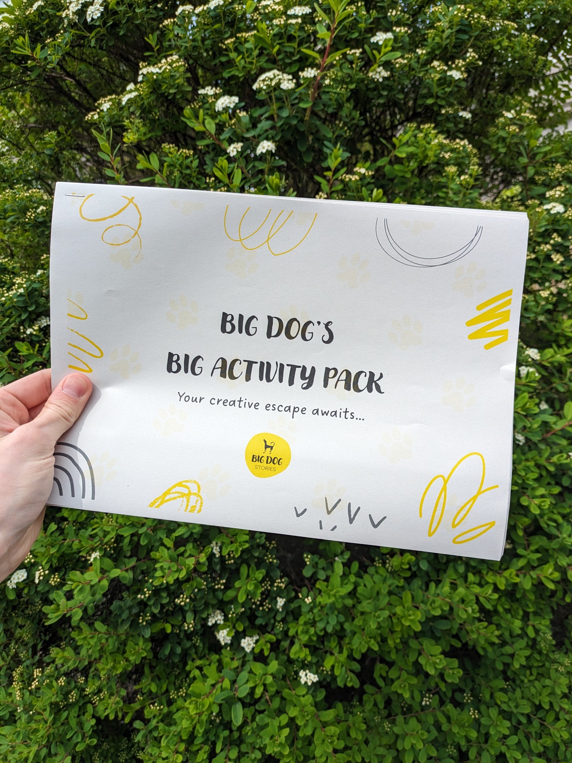 Your book comes with a downloadable activity pack filled with Big Dog colouring-in and drawing tasks for children (and adults) to complete. You can access your copy through the QR code at the back of the book to print at home.